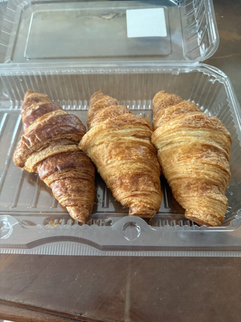 今日は体重が83.5kgでした。昨日いっぱい食べたのに減ってて嬉しいです。朝ごはんは昨日ロピアで買ったクロワッサンを食べました。